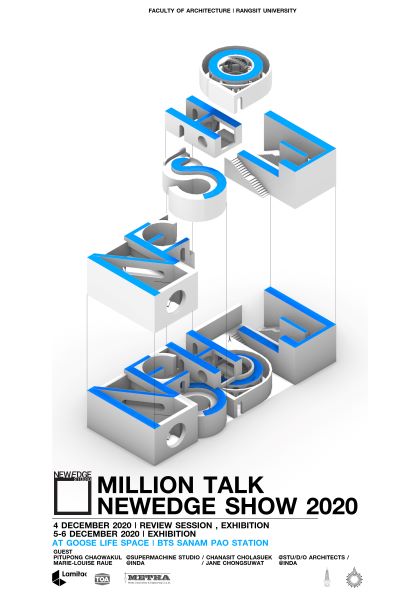 NE SHOW 2020 is an exhibition presenting architectural works from the NewEdge Studio, one of the 7 design studios at the Faculty of Architecture, Rangsit University. The 3-days exhibition showcases 36 groups and individual works of Y2-Y3-Y4 students, who have participated in 9 different international architectural competitions, as well as a thesis project of Y5 students.